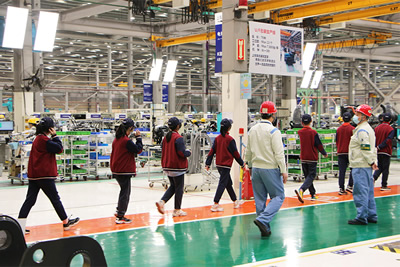 下午1点半,同学们陆续到达工厂,神钢建机(中国)的工作人员们热情地接待了到厂参观的同学和老师们,并引导参观人员去到办公室。